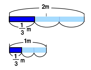 もし 答えが3分の1mとすると 1mの3分の1と長さがちがっちゃう。