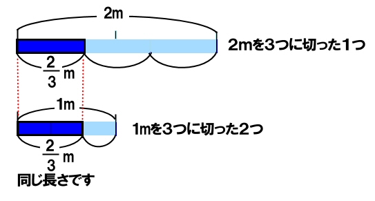答えを3分の2mとすると1mの3分の2と同じ長さになる。